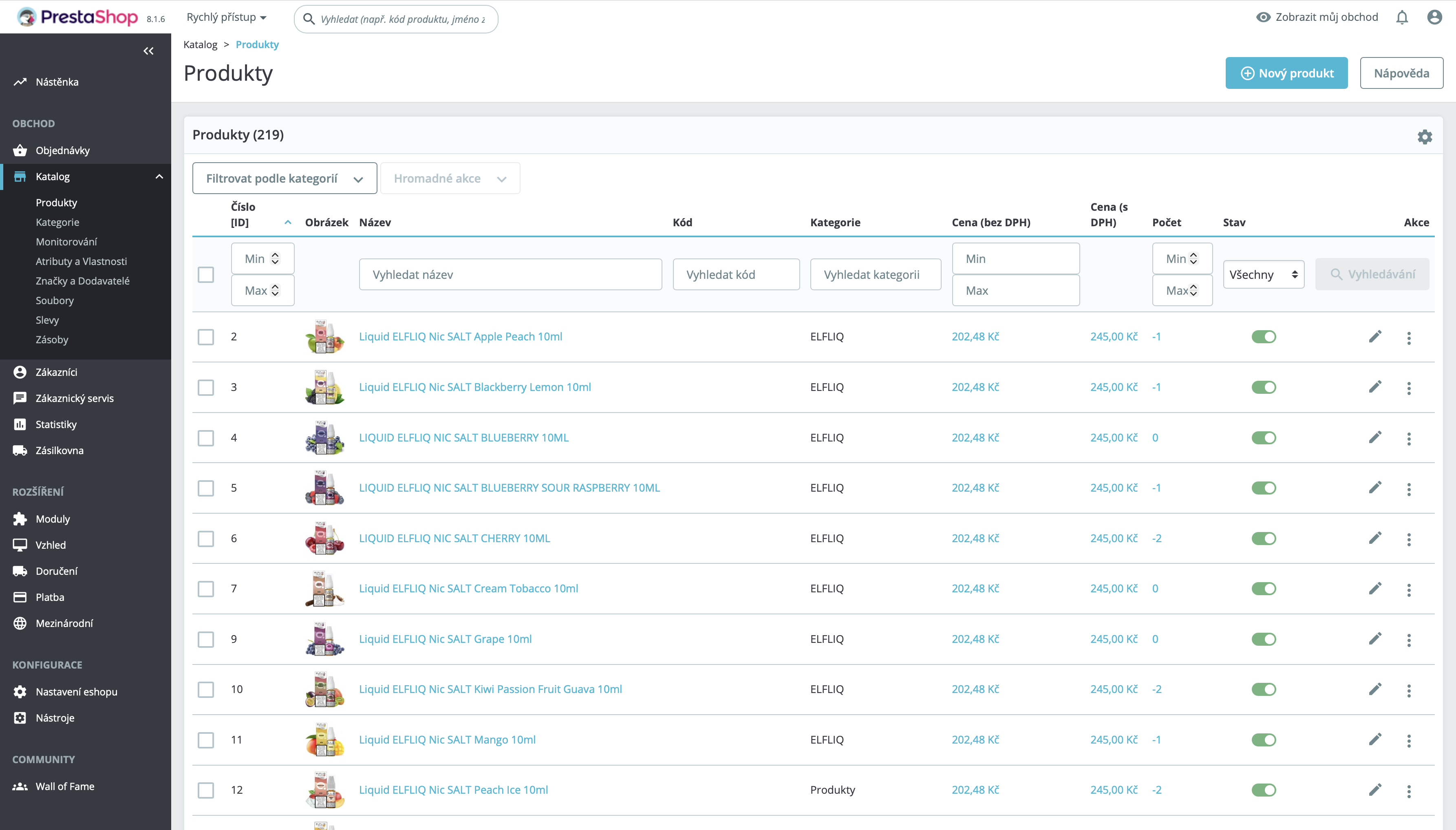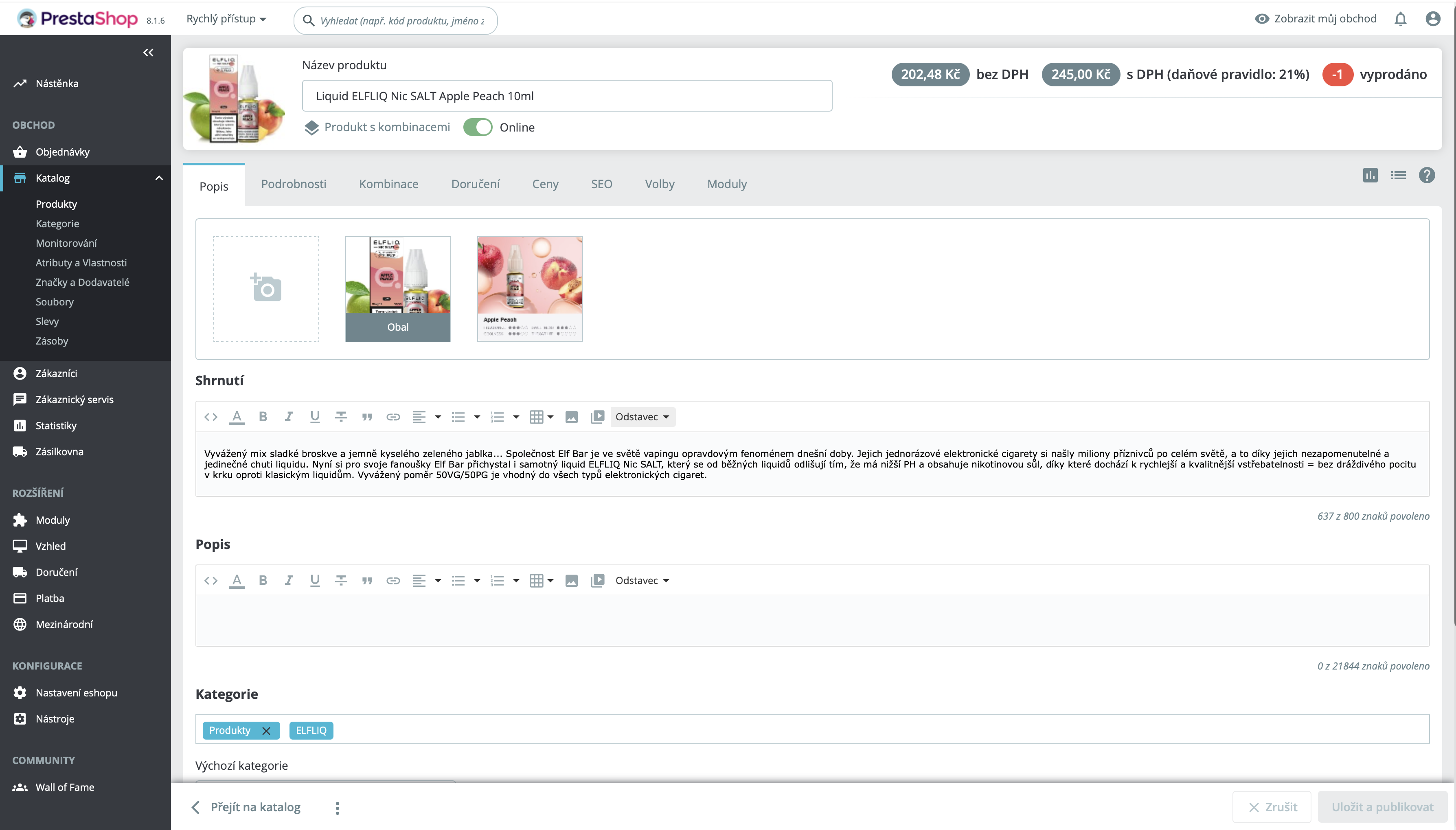 E-shop pro kamenný obchod s elektronickými cigaretami