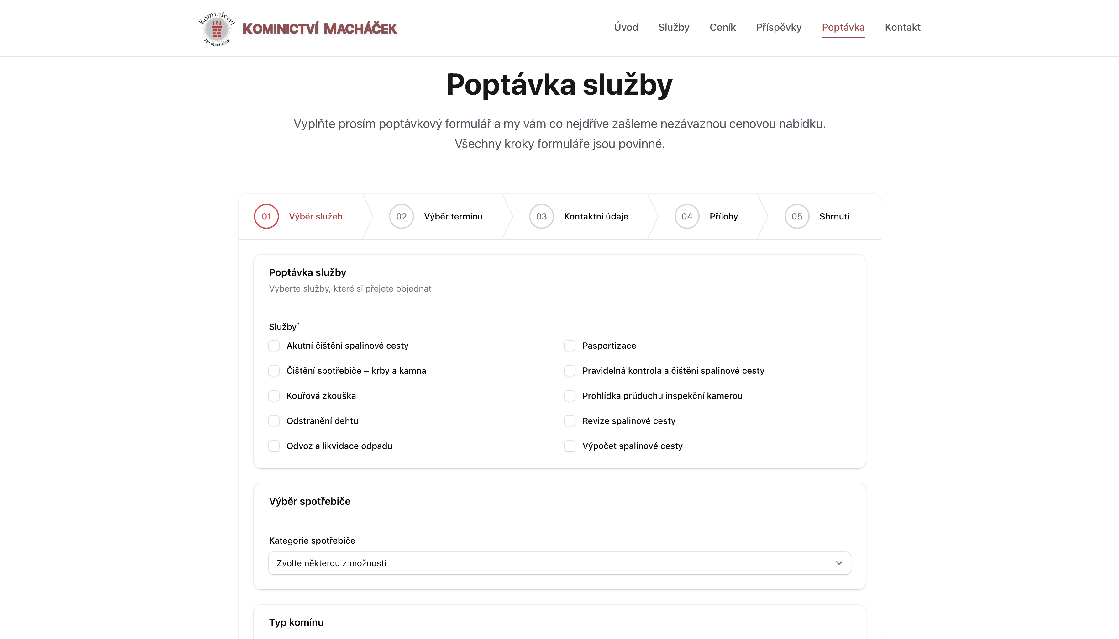 Cílem projektu bylo vytvořit minimalistický a přehledný web, který bude obsahovat klíčové informace o službách, kontaktní údaje a vícekrokový poptávkový formulář. Součástí zadání bylo také umožnit publikaci dalších užitečných informací z oblasti kominické praxe a zajistit snadnou správu obsahu prostřednictvím komplexní administrace.