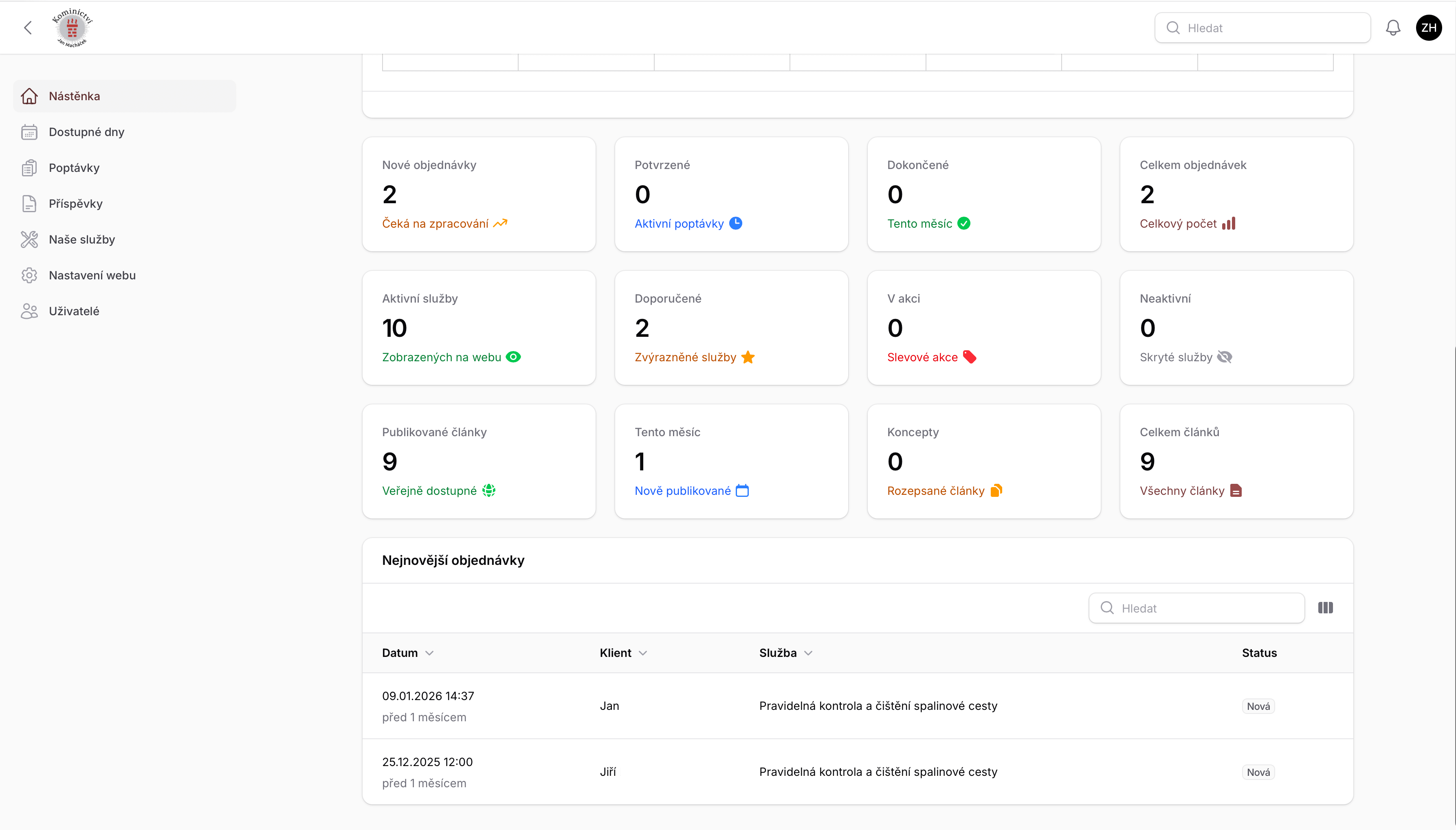 Prezentační web kominické firmy s poptávkovým systémem